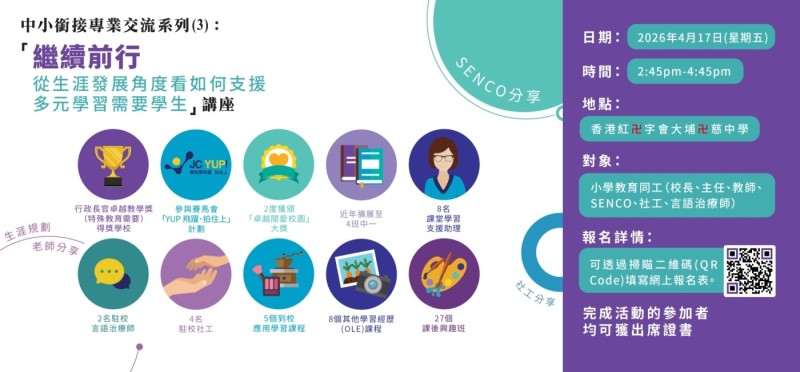 中小銜接專業交流系列(3):「繼續前行--從生涯發展角度看如何支援多元學習需要學生」講座(由香港紅卍字會大埔卍慈中學舉辦)