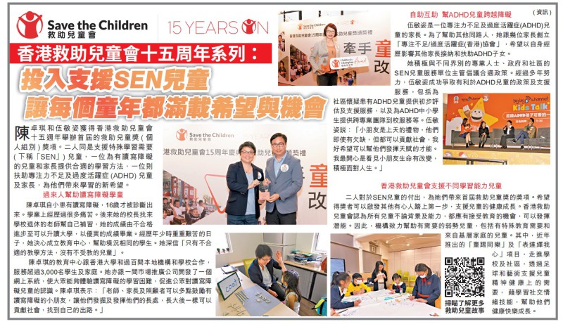 傳媒報導AM730:投入支援SEN兒童 讓每個童年都滿載希望與機會