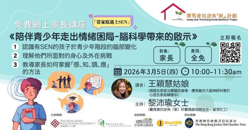 其他機構活動「當家庭遇上SEN」系列《陪伴青少年走出情緒困局——腦科學帶來的啟示》